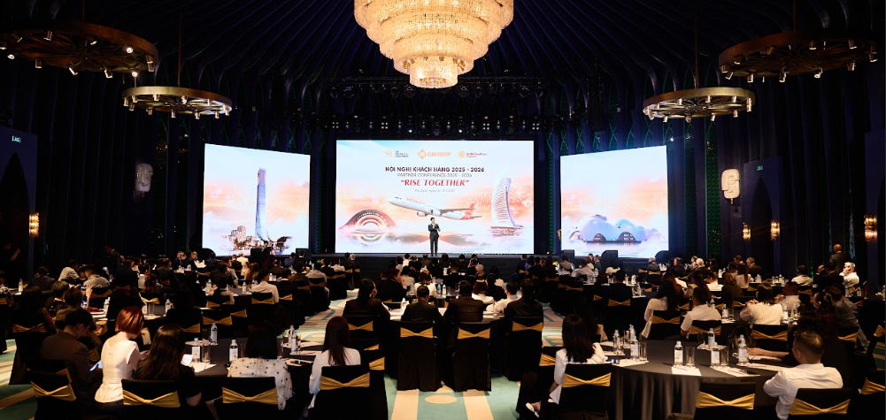 Ngày 26/11, Hội nghị Khách hàng 2025 - 2026 của Sun Hospitality & Entertainment (S.H.E) và Sun PhuQuoc Airways (SPA) – thành viên Tập đoàn Sun Group – đã diễn ra tại Phú Quốc, với sự tham dự của hơn 200 đối tác lớn. Mang chủ đề “Rise Together”, sự kiện không chỉ tổng kết bức tranh tăng trưởng ấn tượng năm 2025 của các điểm đến trên toàn quốc, mà còn là dịp đặc biệt để Sun Group công bố kế hoạch Du lịch - Hàng không năm 2026, với việc đặt Phú Quốc vào vị trí trung tâm trong tầm nhìn hướng đến Diễn đàn Hợp tác Kinh tế châu Á - Thái Bình Dương APEC 2027.