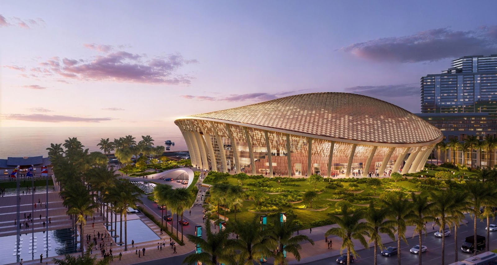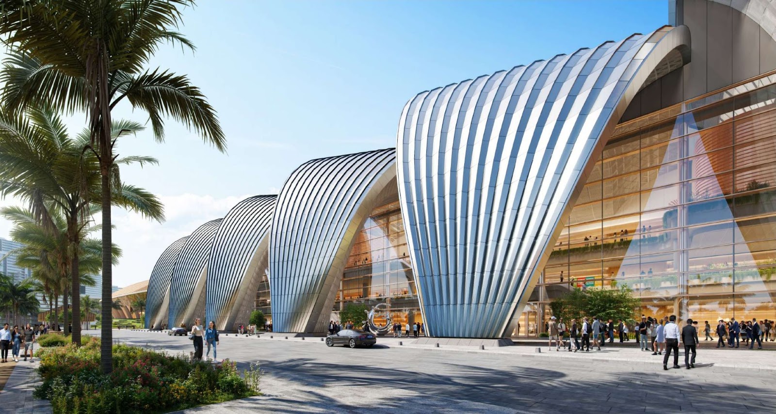 Trung tâm Hội nghị và Triển lãm với phần mái cong lấy cảm hứng từ sóng nước.