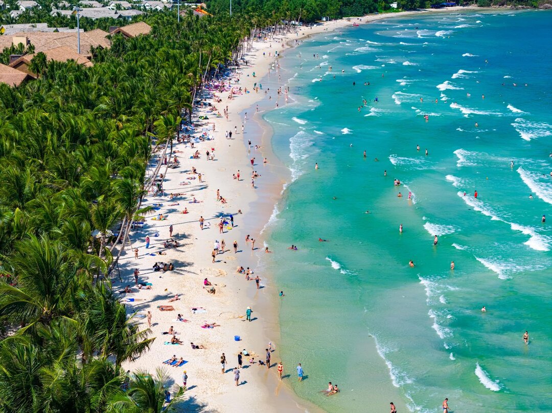 Du khách tận hưởng kỳ nghỉ biển thư thái trong không gian nhiệt đới Phú Quốc.