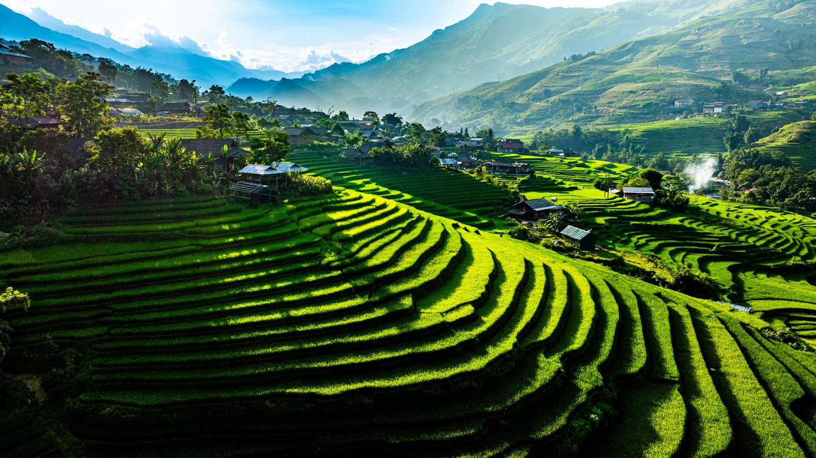 Triền ruộng bậc thang như những dải lụa mềm mại ôm ấp núi rừng Tây Bắc